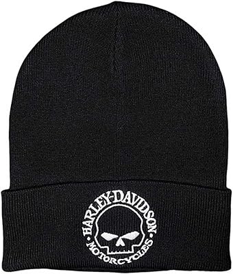 Harley-Davidson Mens Willie G Skull Logo Embroidered Cuffed Beanie Hat - Black