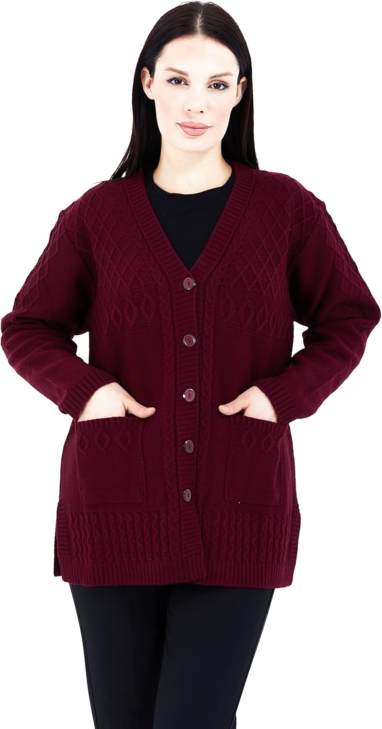 Womens Black Pocket Buttoned V-Neck Short Mother Wool Cardigan